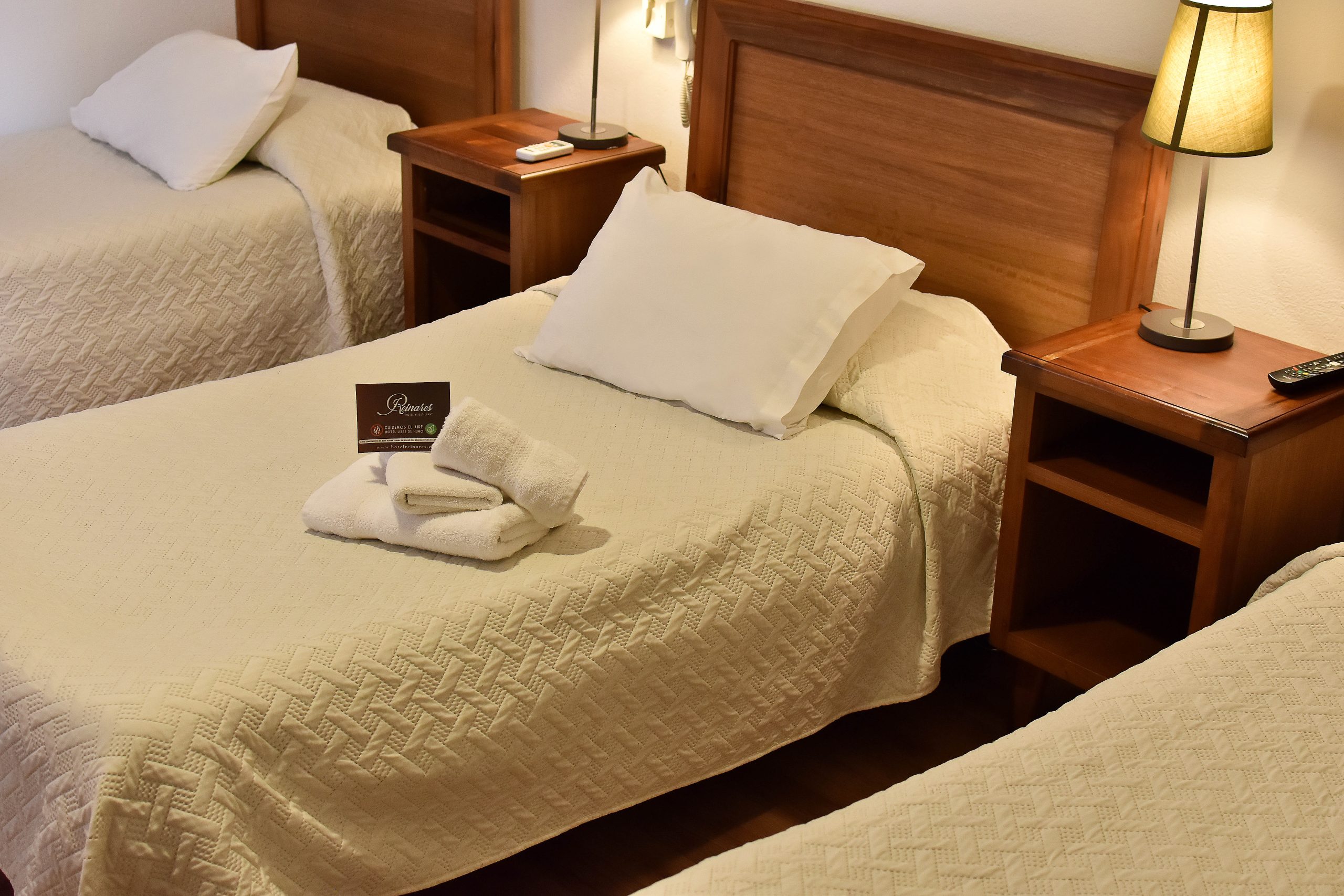 Las habitaciones triples se encuentran disponibles tanto en el primer como en el segundo piso de nuestras instalaciones. Están especialmente diseñadas para alojar cómodamente a tres huéspedes y están equipadas con un citófono que simplifica la solicitud de servicio a la habitación o cualquier consulta que desees realizar. Además, estas habitaciones ofrecen diferentes comodidades, incluyendo aire acondicionado, baño privado, televisión y acceso a estacionamiento. Todo esto se combina para proporcionar una experiencia de alojamiento excepcional para grupos o familias que deseen realizar su estancia en nuestro establecimiento.